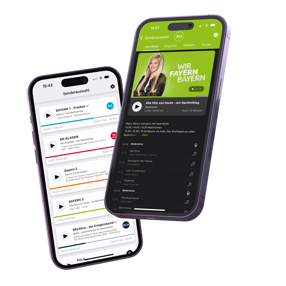 Die BR Radio App und Webseite bündelt alle Radioprogramme des Bayerischen Rundfunks in einem zentralen Angebot. Auf einen Blick bekommt man alle Informationen zu den Sendungen und Songs und kann entlang einer Zeitleiste bis zu sieben Tage im Radioprogramm zurückspulen. Neben den Apps und der Website gibt es BR Radio übrigens auch fürs Auto auf Android Auto und Apple CarPlay.
